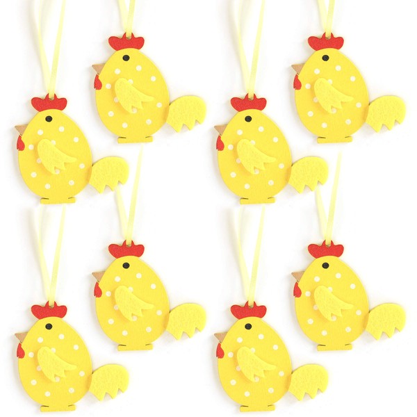By Robelli 8pc Easter Bonnet Wooden Shabby Chic Hanging Decoration Sets - Fun Chick, Bunny, Rabbit, Egg Designs (8pc Yellow Chick Eggs (70mm))