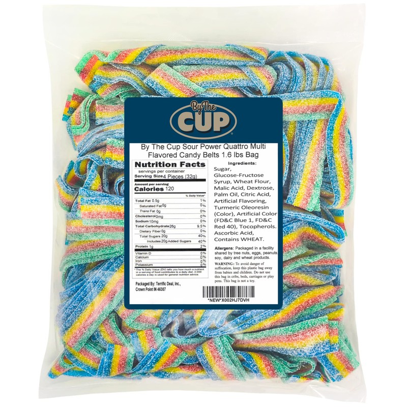 - 1 - 1.6 lb bag By The Cup Sour Power Quattro Multi-flavored Candy Belts