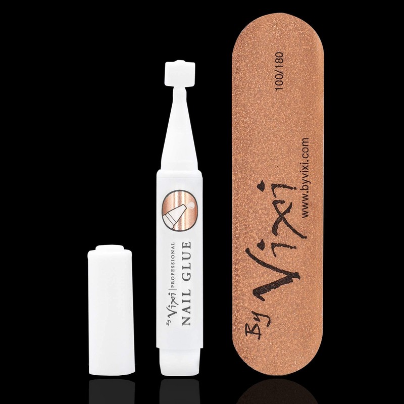 - Apply in minutes: Prep, apply glue and stick, the perfect manicure in minutes. This by Vixi press-on nail kit contains everything you need: the nail file for preparing, polishing and shaping your natural and artificial nails, the glue for a lasting hold and of course the elegant artificial opaque oval nails.