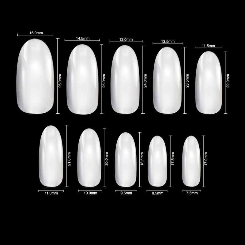 - Multiple sizes - The full cover oval nail set includes 10 nail sizes marked with numbers 0 to 9, individually packaged to easily find the right size for each finger. This By Vixi multi-size kit is designed to comfortably and seamlessly fit small to large fingers (up to 30 manicures).
