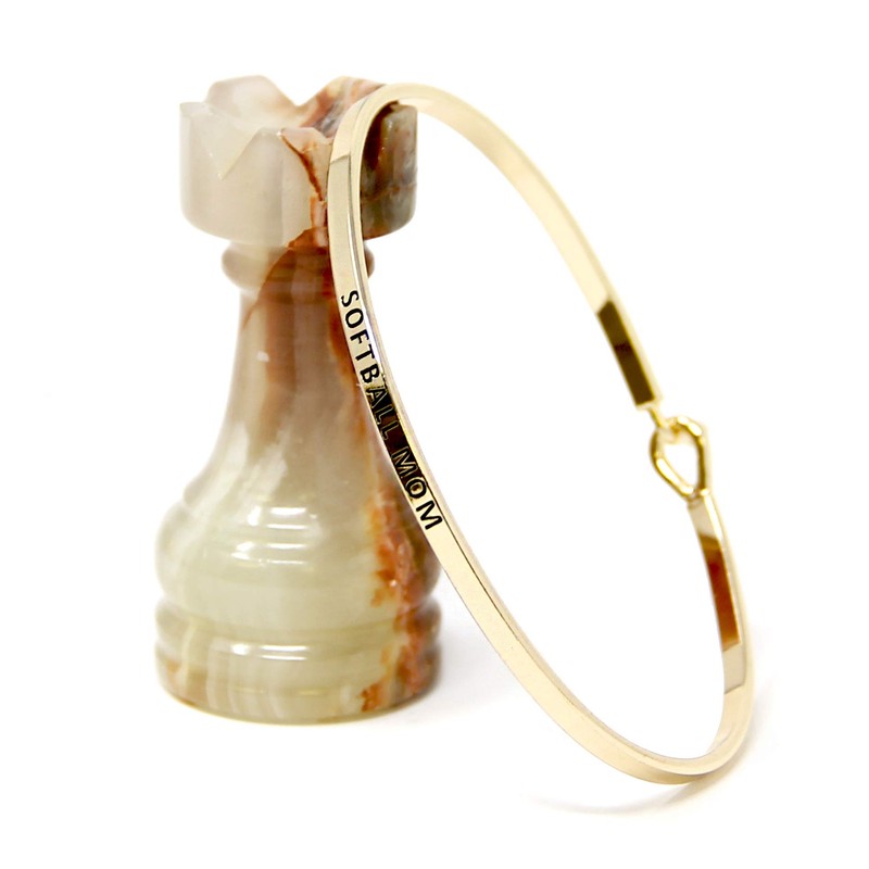 by you Sports Mom Inspirational Messages Engraved Thin Bangle Hook Bracelets (Softball MOM - Gold, Brass)