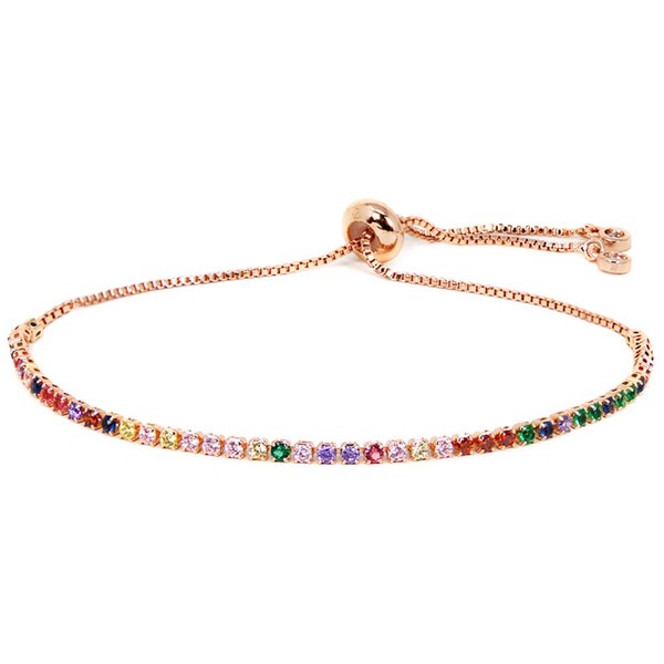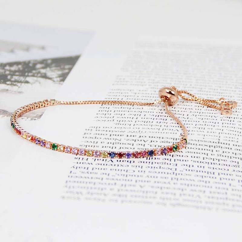 by you Women Fashion Cubic Zirconia Charm Tennis Adjustable Pull String Bracelet Gold Silver Color (Multi Stones 2mm - Rose Gold)