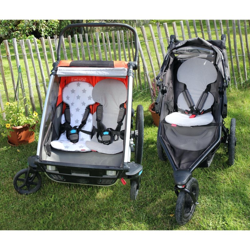 - Maximum comfort. Comfortable, double-sided seat cover, universal fit for most models of baby carriers, car seats and pushchairs with 3 and 5 point harness system. Also in the buggy, bicycle trailer, bicycle seat, high chair or rocker, the ByBoom seat cover ensures a pleasant seating climate all year round. A special padding / filling of the seat cover ensures stable shape even after washing and does not form wrinkles. Top seating comfort for your baby without pressure points.