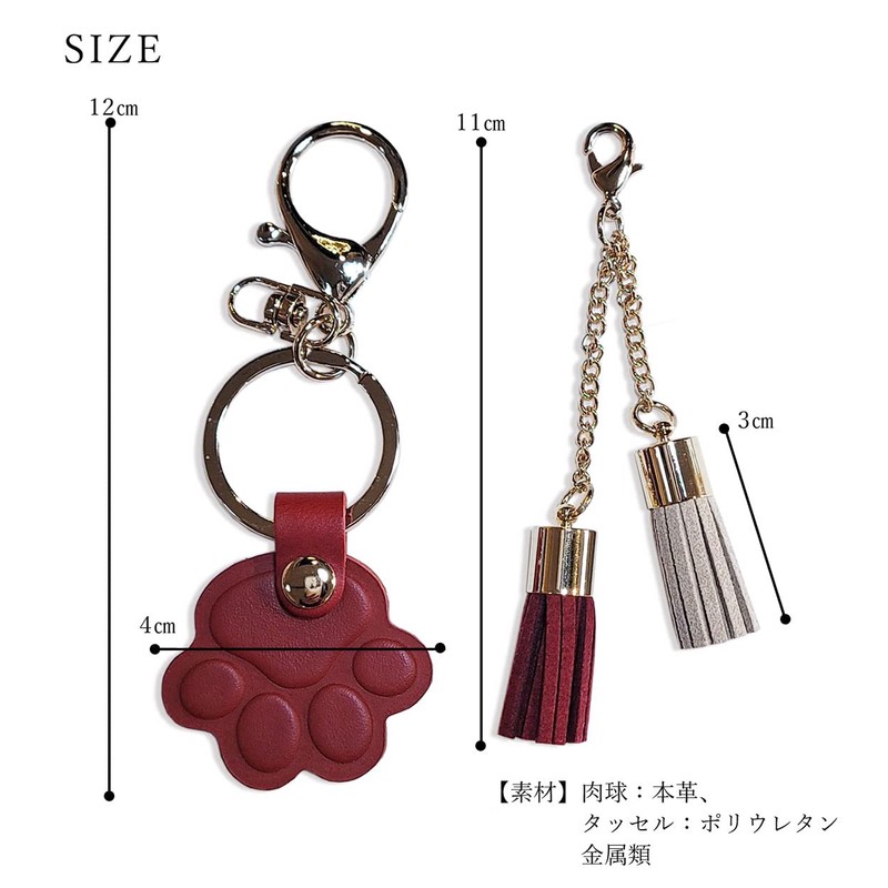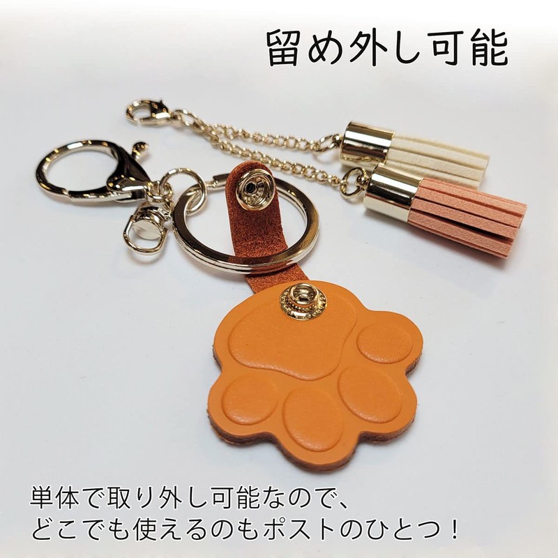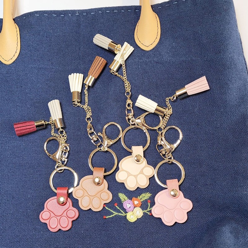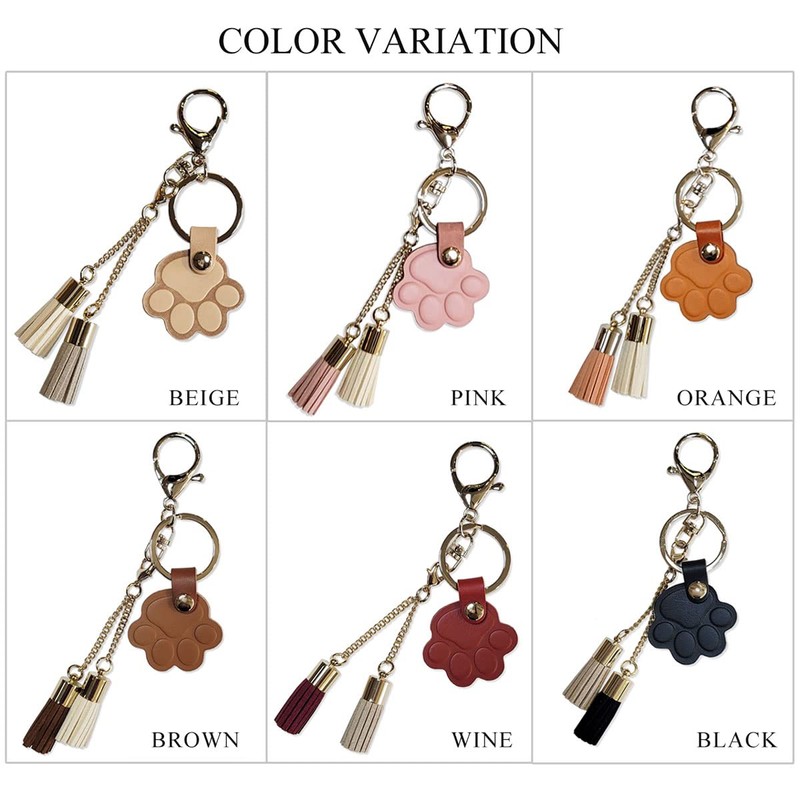 - This bag keychain combines a cute tassel charm with a durable cow leather paw
