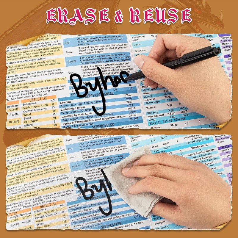 - Wipeable & Waterproof : Byhoo dnd dm screen is crafted from water-resistant materials. Easily jot down notes with a dry-erase pen and wipe clean for repeated use.