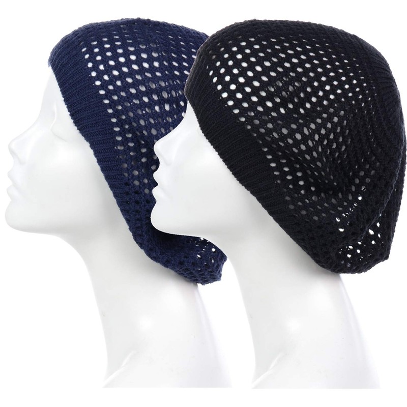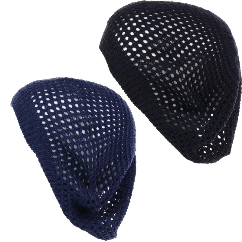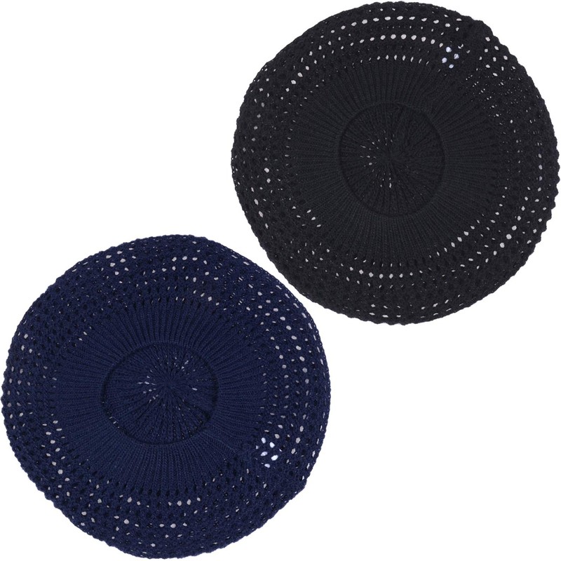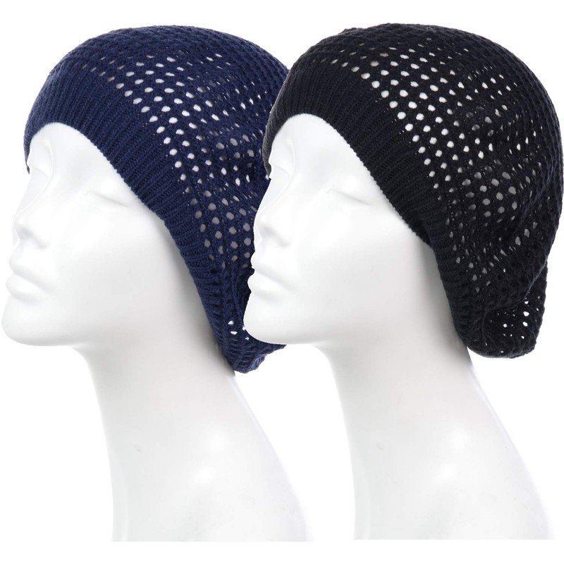 BYOS - Gorro de ganchillo para mujer, Net-2 Pack-azul marino y negro, Talla única