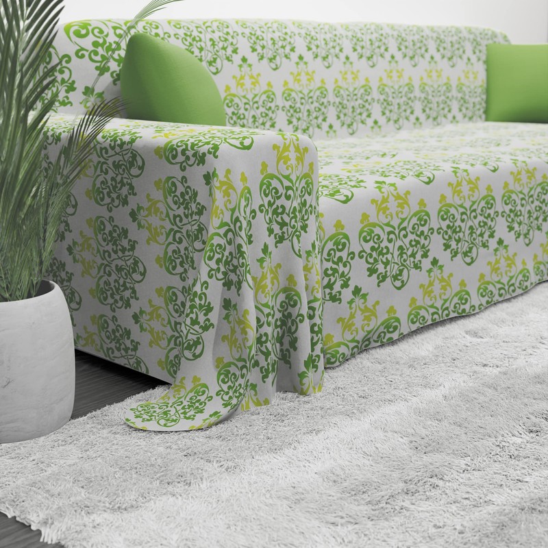 - Features: Soft and durable fabric composition made of 100% cotton with only one-sided print with pearl grey background. Patented by our company with new generation yarns, it resists the claws of cats and dogs, but is also practical and breathable. The dense fabric of the fabric is soft and semi-glossy, with a shadow effect from light green to a darker green and is easy to clean. Does not let hair through
