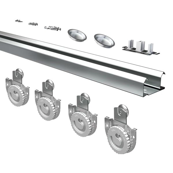 - Flexible and Sturdy:Commercial grade precision extruded galvanized steel box track ensures door will not jump from track, convex rails on track allow flexible and free rolling. Built-in fascia hides the sliding hardware from view.When sliding, it is smooth and silent, without making annoying noises.