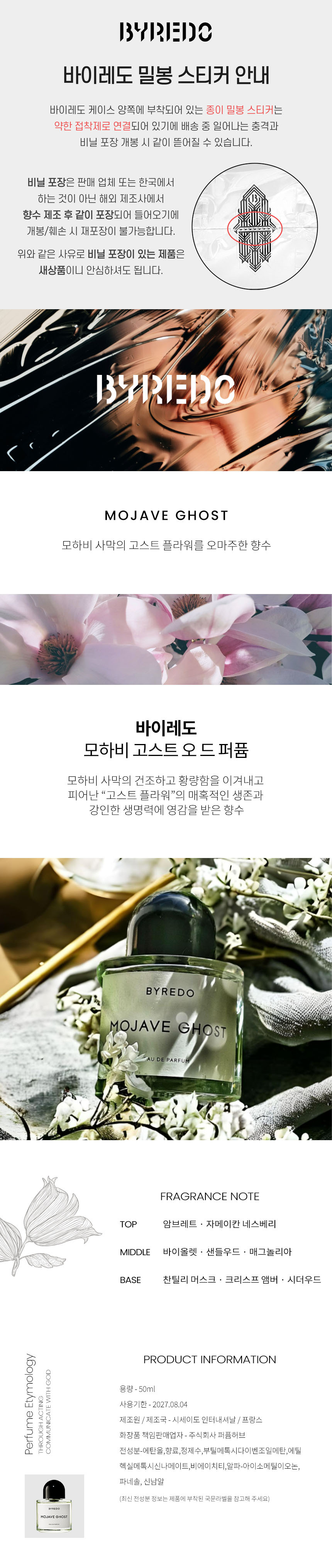 Byredo Mojave Ghost EDP 50ml / 바이레도 모하비 고스트 EDP 50ml
