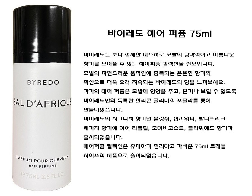 Byredo Mojave Ghost Hair Perfume 75ml/Bal d'Afrique / 바이레도 모하비고스트 헤어퍼퓸 75ml발다프리크