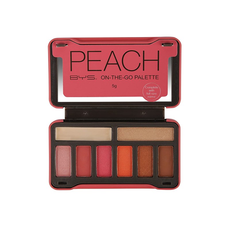 BYS On-The-Go Peach Eyeshadow Palette with Primer Highlighter and Mirror, 6 Eyeshadows, 1 Highlight, 1 Prime