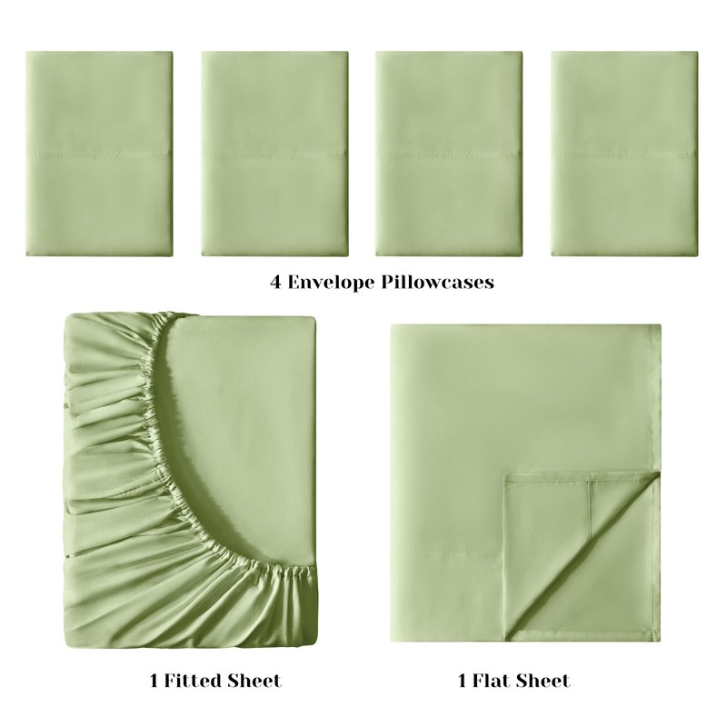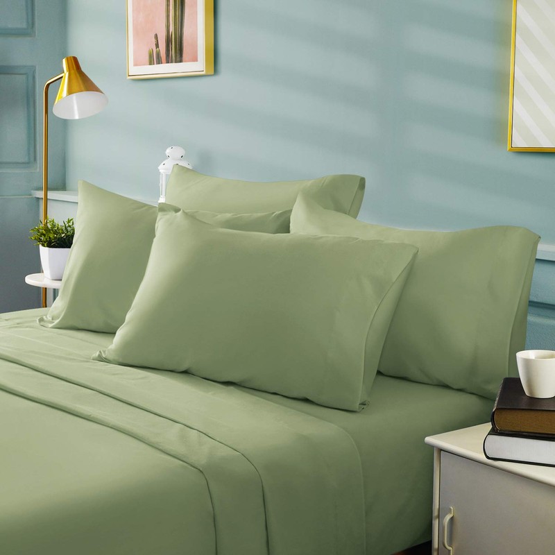 BYSURE 6 Pieces Bed Sheets Set(Queen, Green Sage) - Hotel Luxury Super Soft 1800 Thread Count 100% Microfiber Sheets with Deep Pockets, Wrinkle & Fade Resistant