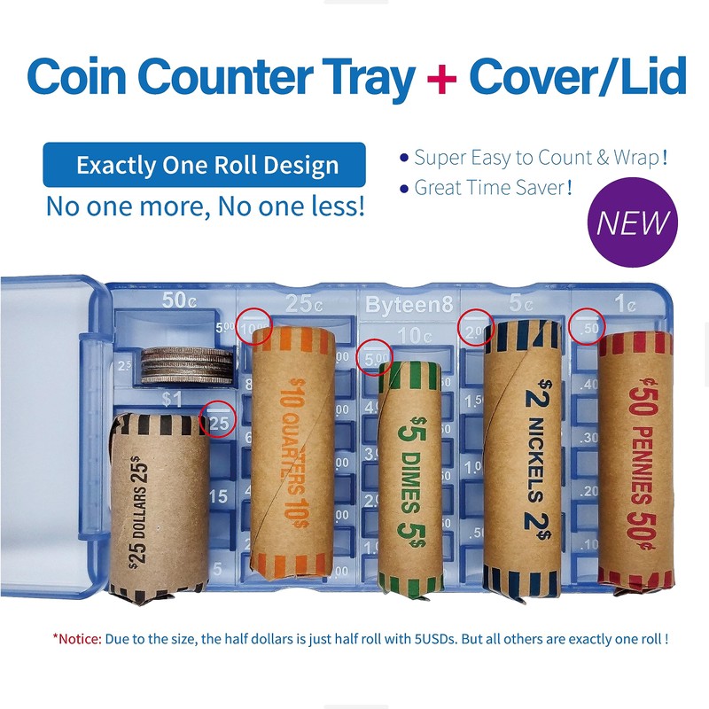 - Exactly One Roll Design: Byteen8 Coin Sorter Tray is Exactly Full Roll Designed. One Roll One Group. No one more & No one less! Super Easy to Count and Wrap. Great Money Teaching & Learning Tool for Kids as a Gift. Perfect loose change tray to use with coin wrappers.