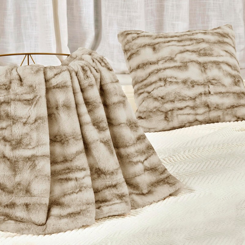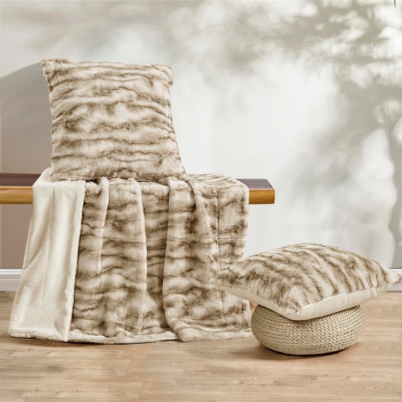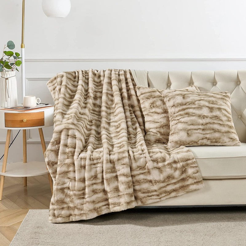 - MATERIAL & SIZE: Each package includes 3 items, 1 faux fur throw blanket (50x60 or 60x80 Inches) and 2 matching zipper closure throw pillow covers (20x20 Inches). NO INSERTS INCLUDED. The ultra-soft and luxury faux fur face provides comfort and coziness, while a sherpa reverse adds a soft, luxurious touch.