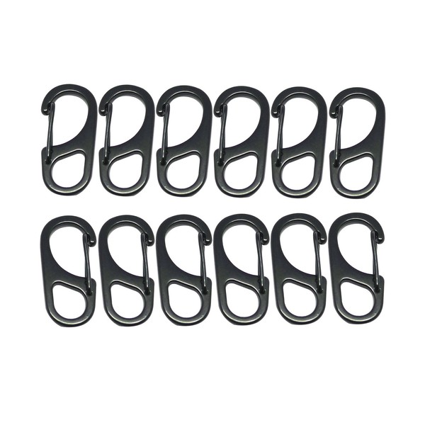 Bytiyar 12 pcs 1.25in/32mm Small Carabiner Clips Snap Hooks with Fixed Eye Spring Clasps Keychain Buckles, Black