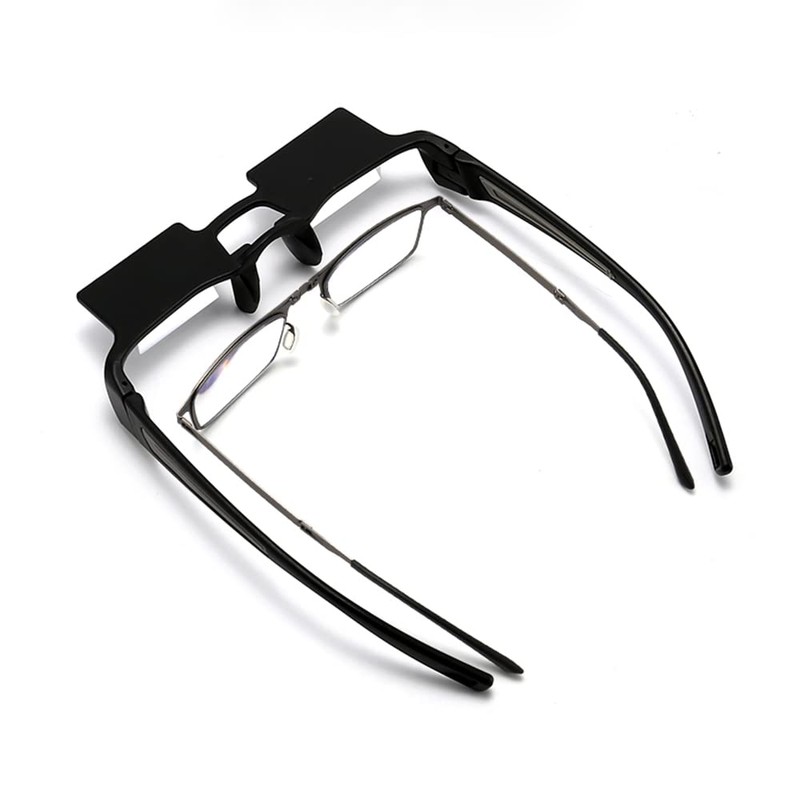 - Preserve Your Health - Our Lazy Glasses feature an optical glass prism that uses optics to turn your vision 90 degrees downward. It helps you read without looking down, and even allows you to watch videos while lying in bed and on the couch. Protect your cervical and lumbar spine!
