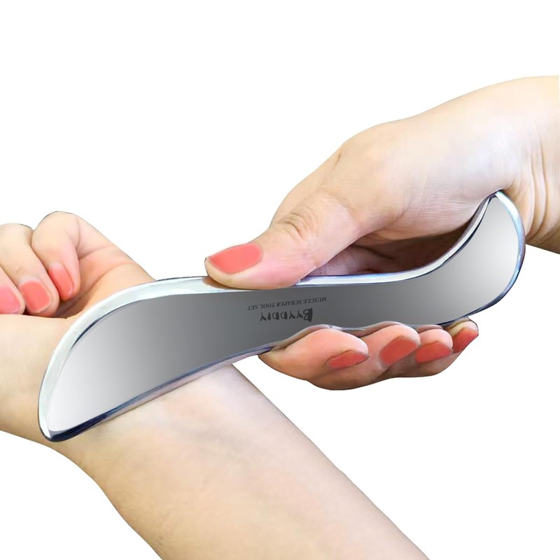 - ♕This Stainless Steel Muscle Scraper Tool can help Relieve muscle tension, break soft tissue adhesion and fascia limitation, Promote blood circulation,Stimulate regional red blood cell renewal,And enhance skin elasticity and tightness by applying pressure on parts, Scraping muscles and scraping massage