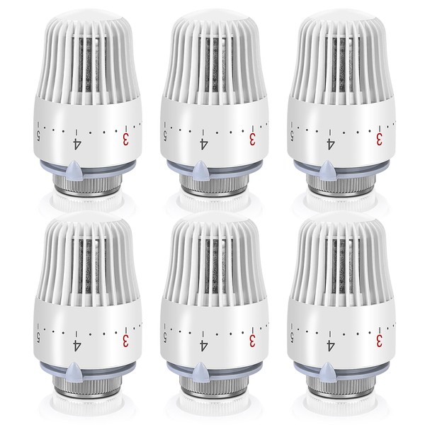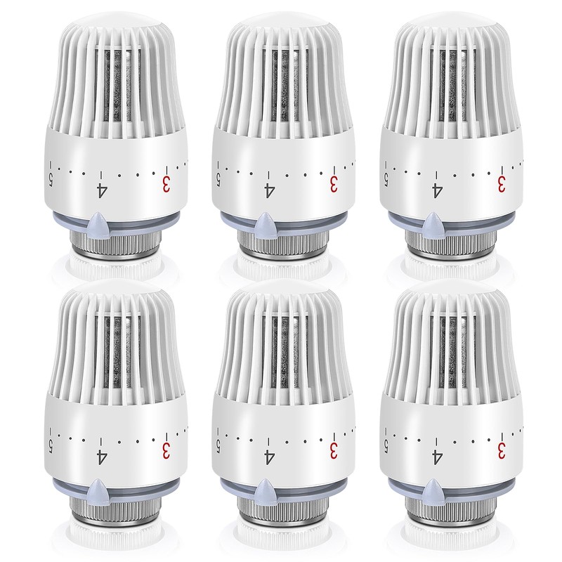 BYZESTY Heating Thermostat Radiator Thermostat Head Heating Controller: Pack of 6 Radiator Valve M30 x 1.5, Heating Thermostat Head, Thermostatic Valve Radiator Replacement Head for Office Home