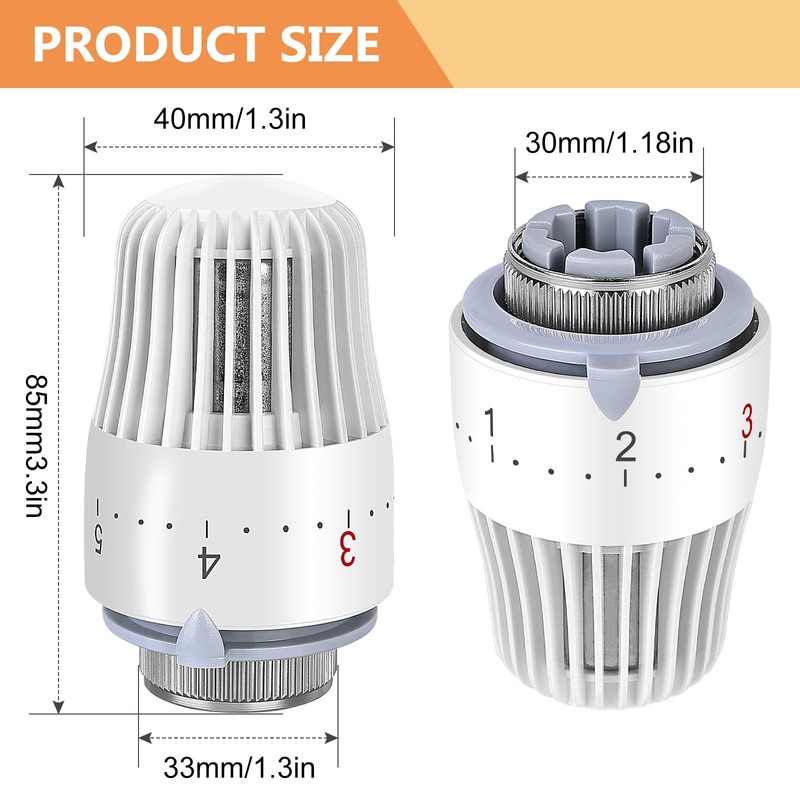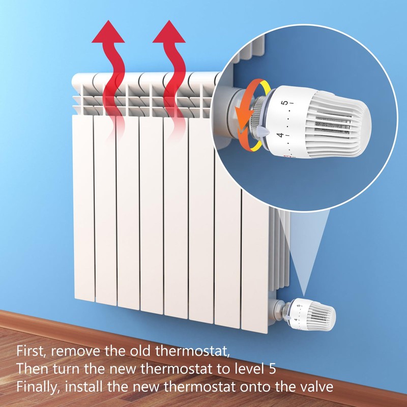 - Easy temperature control: the heating thermostat for the radiator offers 5 different levels for temperature control. Thermostat head has an adjustment aid and is equipped with a liquid sensor and a zero setting.