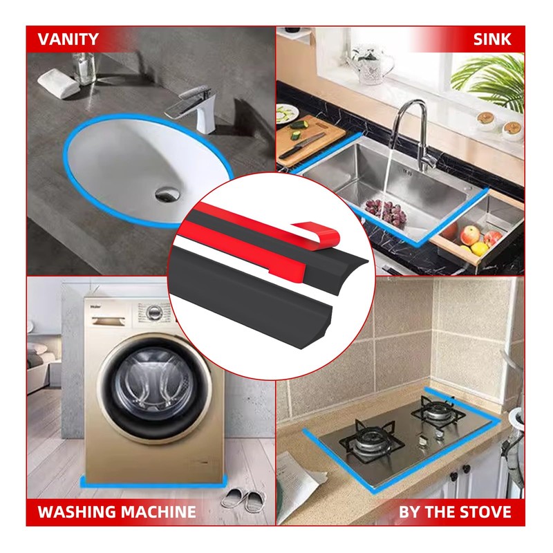 - 【USAGE SCENARIOS】: This water dam is widely used on all kinds of smooth surfaces, such as kitchen countertops, bathroom countertops, sinks, under shower thresholds and around bathtubs and other areas prone to splashing water