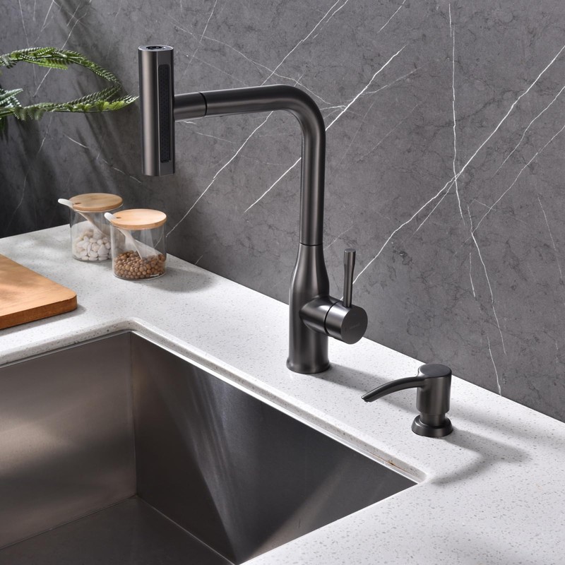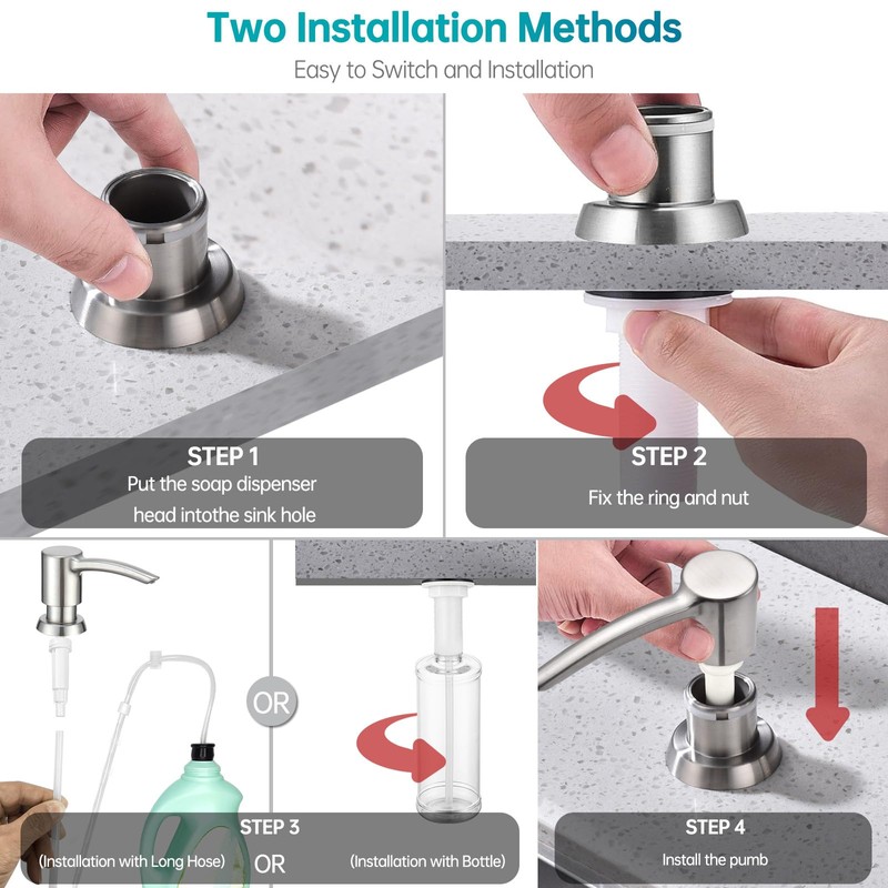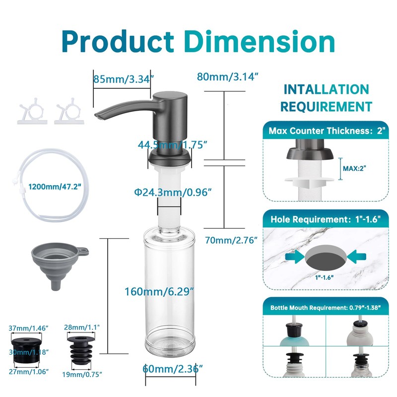 BZOOSIU Dish Soap Dispenser for Kitchen Sink (Gray), Countertop Sink Soap Dispenser Water Pump with 47” No-Spill Extension Tube Kit Design for Kitchen Bathroom, No More Refills