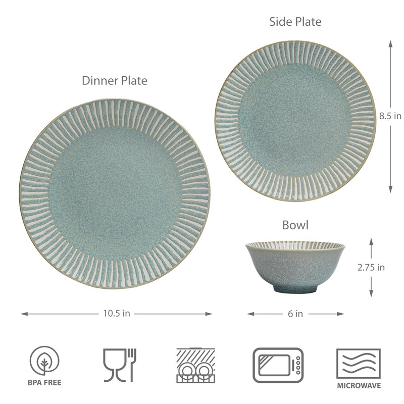 Bzyoo 12-Piece Reactive Blue Ceramic Dinnerware Set Bali Breeze Blue Elegant ...