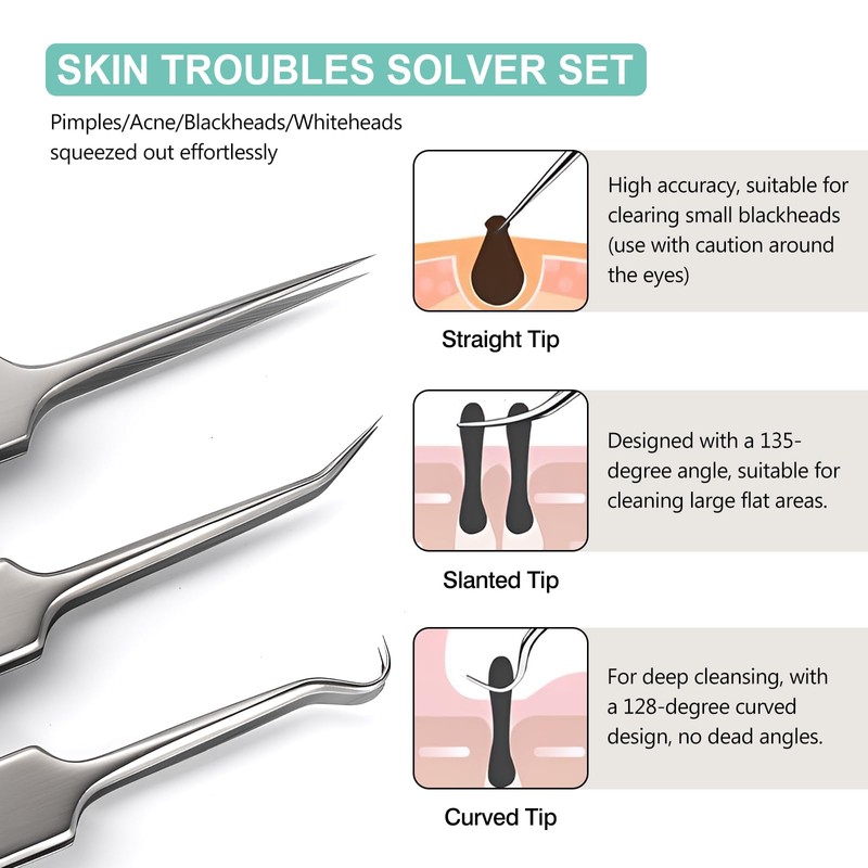 - Multi-purpose: whether for plucking eyebrows, removing splinters or working precisely in medicine, this tweezer set offers the right tweezers for every task. The different shapes and tips allow you a variety of uses.
