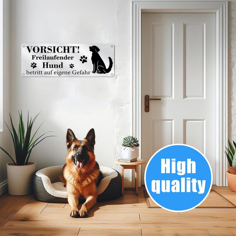 3. Weatherproof warning sign dog: This dog sign is specially designed for outdoor use and can withstand extreme weather conditions. No matter rain, sun or snow, the warning sign remains highly visible and durable. It is the ideal solution to permanently point out free-range dogs and ensures that every visitor takes the notice seriously.