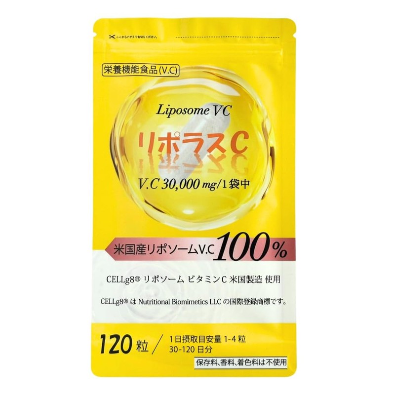 ●1袋(120粒)中に米国製リポソームビタミンC 100%、30,000mg(実質ビタミンC含有量 )配合。