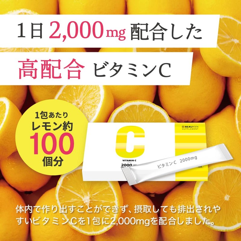 - 【高濃度】ビタミンCを1包に2,000g配合したパウダータイプです。そのため、非常に酸っぱい味となっています。
