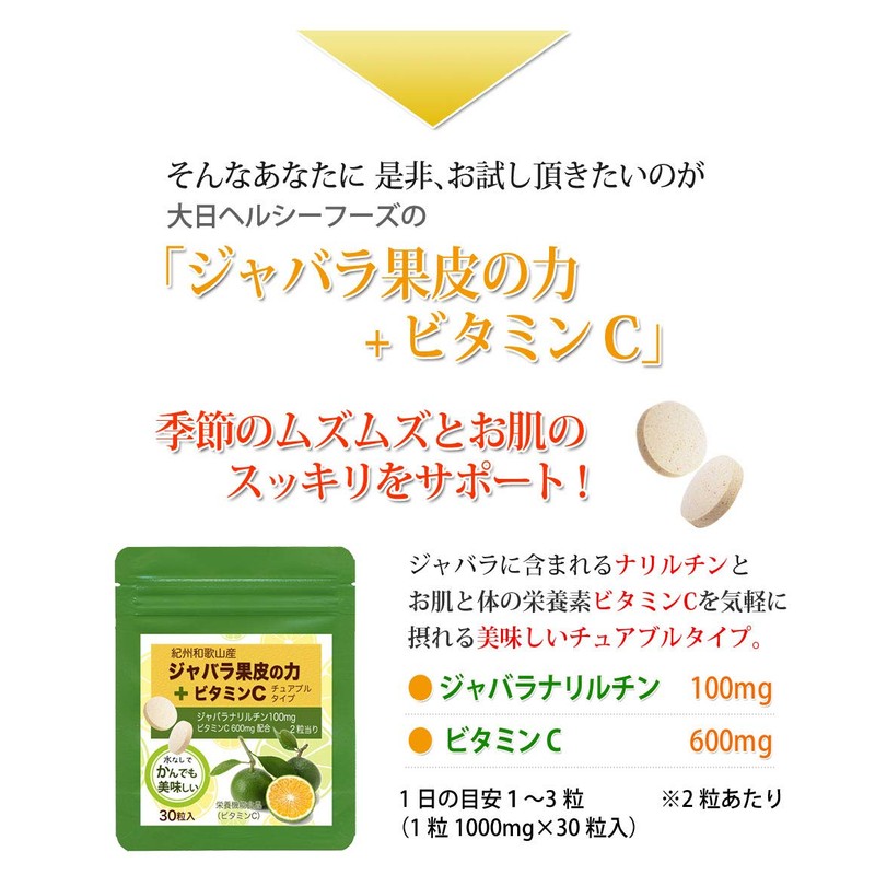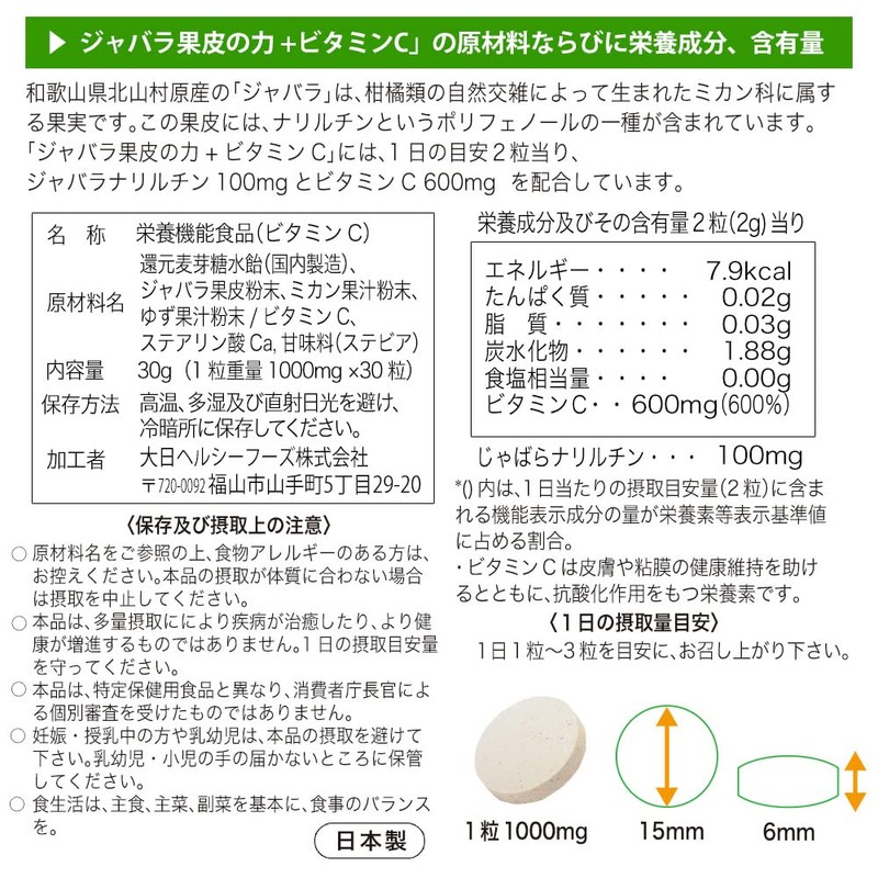 大日ヘルシーフーズ ジャバラ(じゃばら)果皮の力+ ビタミンC 30粒入×2袋 チュアブルタイプ サプリメント