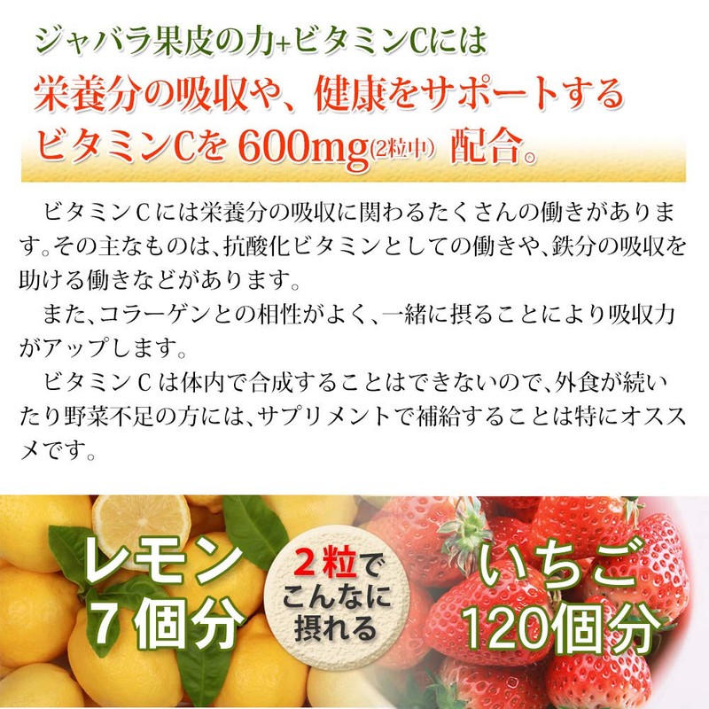 - ✅【栄養成分及びその含有量(2粒中)】エネルギー・・7.9kcal 、たんぱく質・・ 0.02g 、脂 質・・ 0.03g、 炭水化物・・ 1.88g 、食塩相当量・・ 0.00g 、ビタミンC・・600mg(600%)