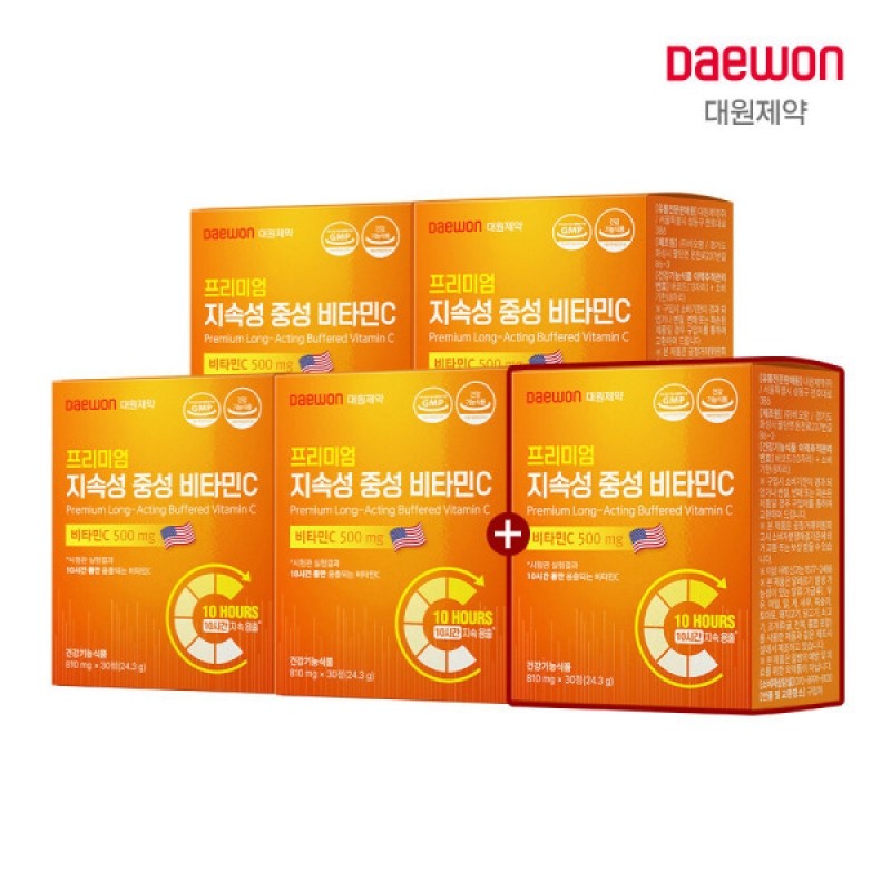 프리미엄 지속성 중성 비타민C 고함량 500% 30정 x 4+1박스 / 10시간 지속