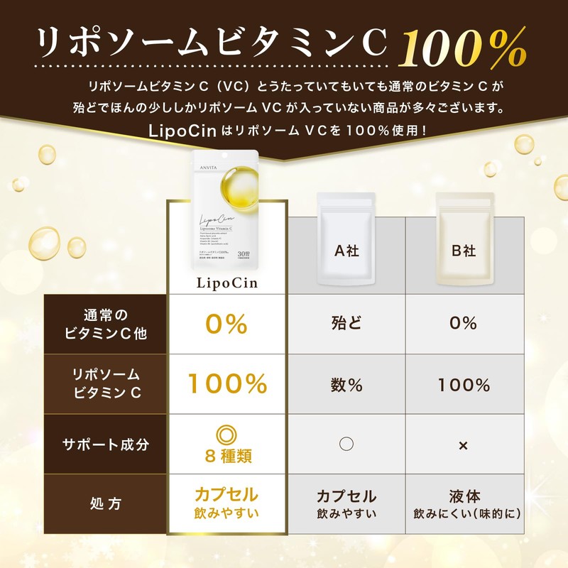 - リポソームビタミンCを配合。通常のビタミンCと混ぜるのではなく、リポソームビタミンCを100%使用しています。