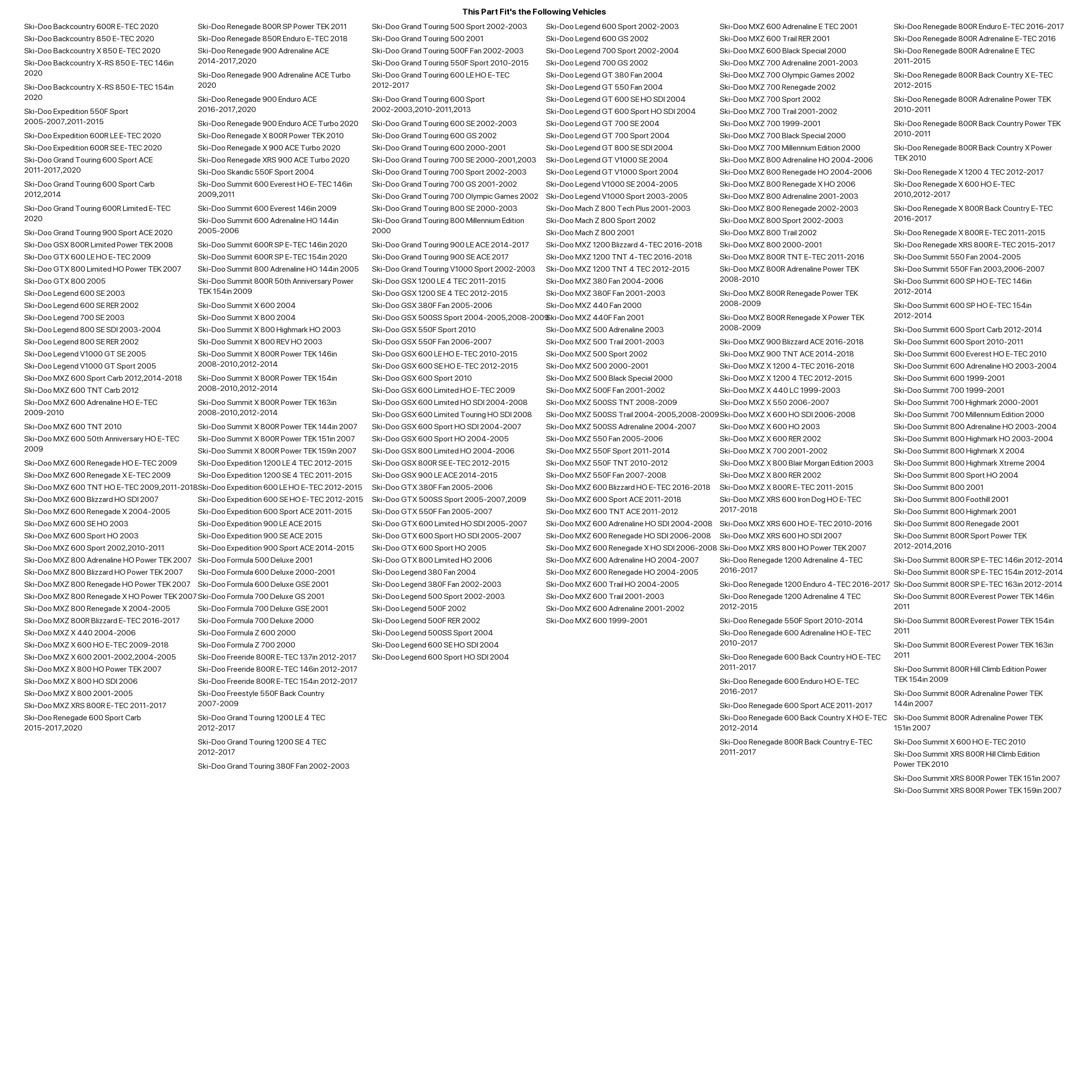 - Fits Ski-Doo: Rev, XP, XM and XS