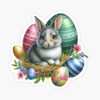 This delightful piece of art features a fluffy, sweet bunny sitting cozily in a bird's nest, surrounded by large Easter eggs in vibrant pastel colors. The whimsical scene captures the joy and cheer of the Easter holiday, with the bunny adding an extra touch of cuteness to the festive setting.