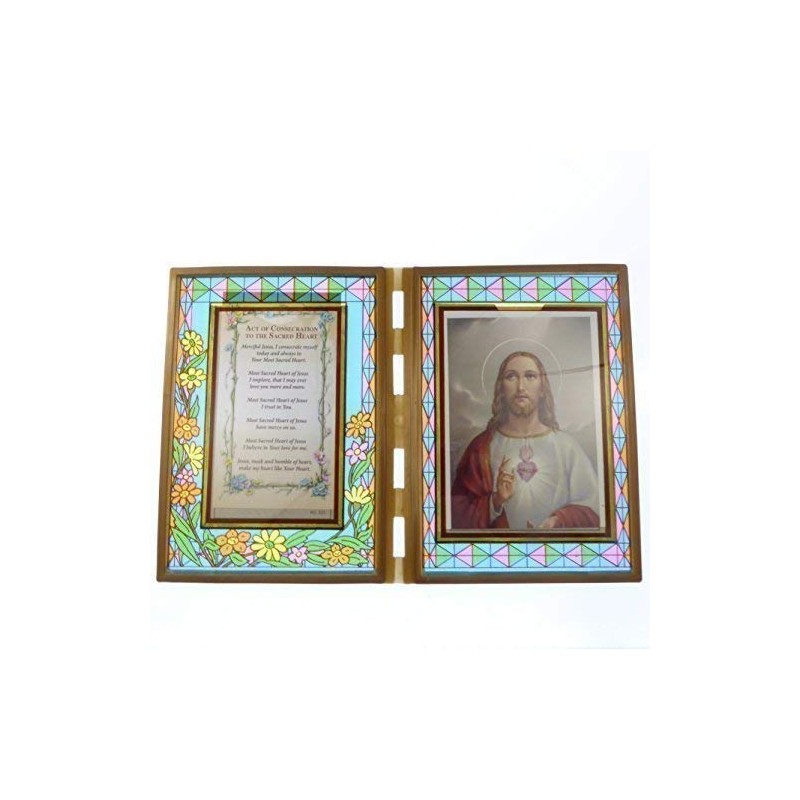C BC Stained glass double frame with Act of Consecration to Sacred Heart and Jesus image 18cm