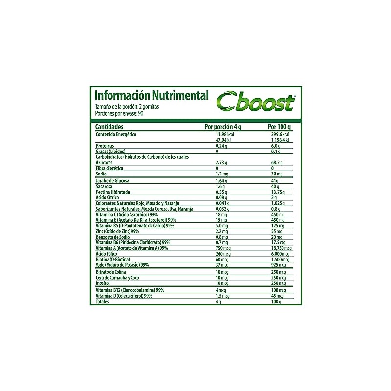 C-boost - C-Boost - Gomitas con Multivitaminas y Minerales – Suplemento alimenticio en formato gomitas, con una combinación de vitaminas y minerales – 180 Gomitas/Pack, 2 g c/u. ✅ Diseño innovador que supera las expectativas. Construcción robusta y atención al detalle. 🎯 Producto más buscado del mes. Ideal para quienes buscan lo mejor en calidad y estilo. Producto auténtico con satisfacción total asegurada. ¡No te quedes sin el tuyo y aprovecha esta oportunidad única!