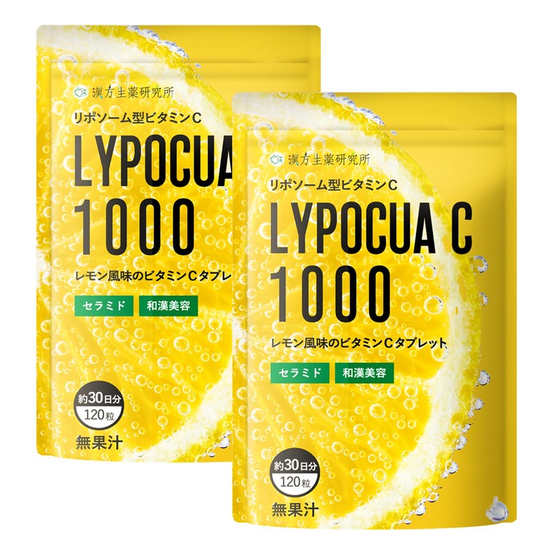 ■商品名/LYPOCUAC ■名称/ビタミンC含有加工食品 ■原材料名/マルトース(国内製造)、クコ葉末、ヨモギエキス末、ウコンエキス、オタネニンジン抽出物、セラミド含有米抽出物/L-アスコルビン酸、セルロース、 HPC、ショ糖脂肪酸エステル、香料、甘味料(ステビア)、微粒酸化ケイ素、L-アスコルビン酸2-グルコシド、ヒマワリレシチン■内容量/60g(500mg×120粒)■賞味期限/商品裏面に記載■保存方法/高温・多湿、直射日光を 避け、なるべく涼しい所に保存してください。■お召し上がり方/1日4粒を目安に、口の中で溶かすか、もしくは噛んでいただき、水またはぬるま湯などでお召し上がりください。■ご注意/◎本品は天然由来原料を使用しているため、 色やにおいに差が生じる場合がありますが、品質には問題ありません。◎体質や体調によりまれに合わない場合がありますが、その場合はご使用をお控えください。◎通院・入院中の方や妊娠・授乳中の方は、ご使用になる前に 医師にご相談ください。◎食物アレルギーのある方は、原材料名をご参照の上お召し上がりにならないでください。◎小さなお子様の手の届かないところに保管してください。◎開封後はお早めにお召し上がりください。 ◎賞味期限の過ぎた製品はお召し上がりにならないでください。◎食生活は、主食、主菜、副菜を基本に、食事のバランスを。【栄養成分表示】4粒(2000mg)あたり エネルギー/8.0kcal、たんぱく質/0.006g、脂質/0.06g、 炭水化物/1.87g、食塩相当量/0.001g、ビタミンC/1000mg