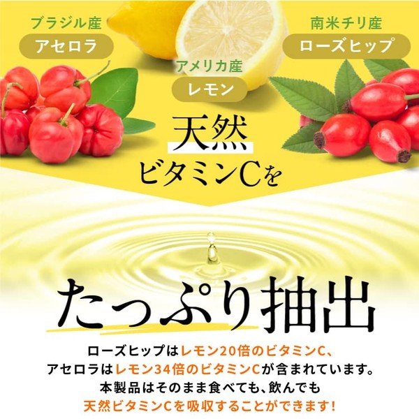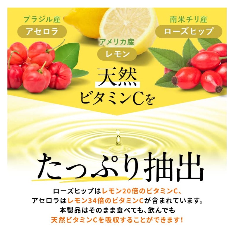 - ✅2000㎎の中に320mgの天然ビタミンc配合(2粒)
