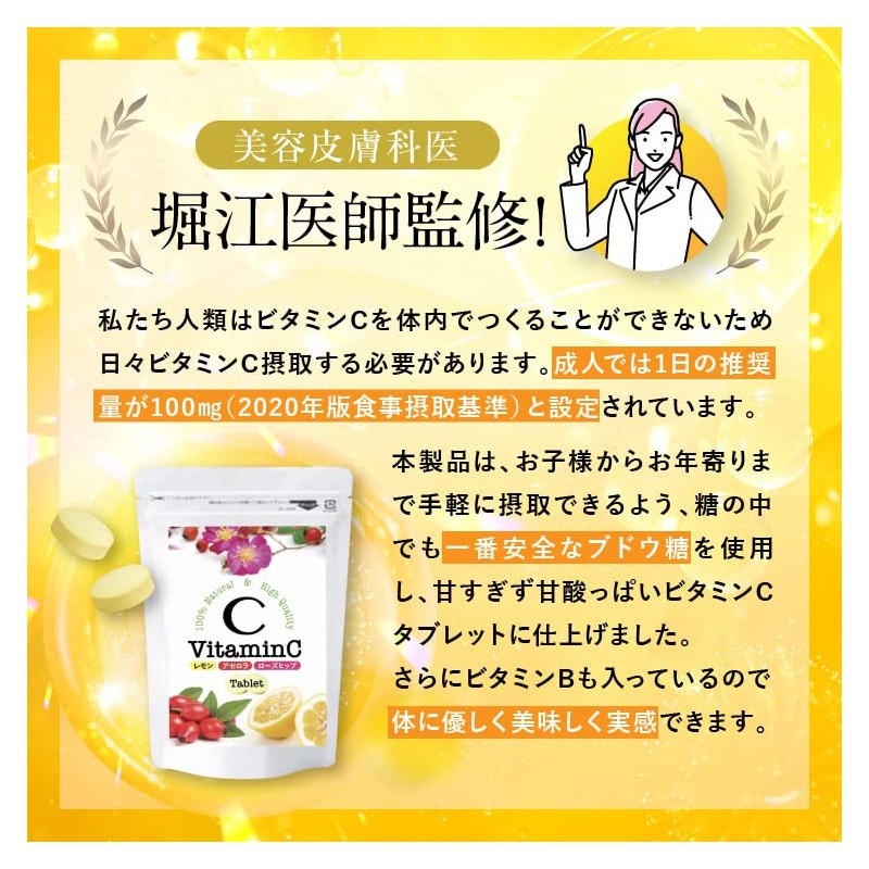 - ✅2000㎎の中に320mgの天然ビタミンc配合(2粒)