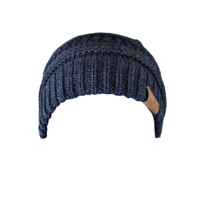 C.C Gorro de punto trenzado, grueso, suave, elástico, cálido, Azul marino/gris oscuro melange, Talla única