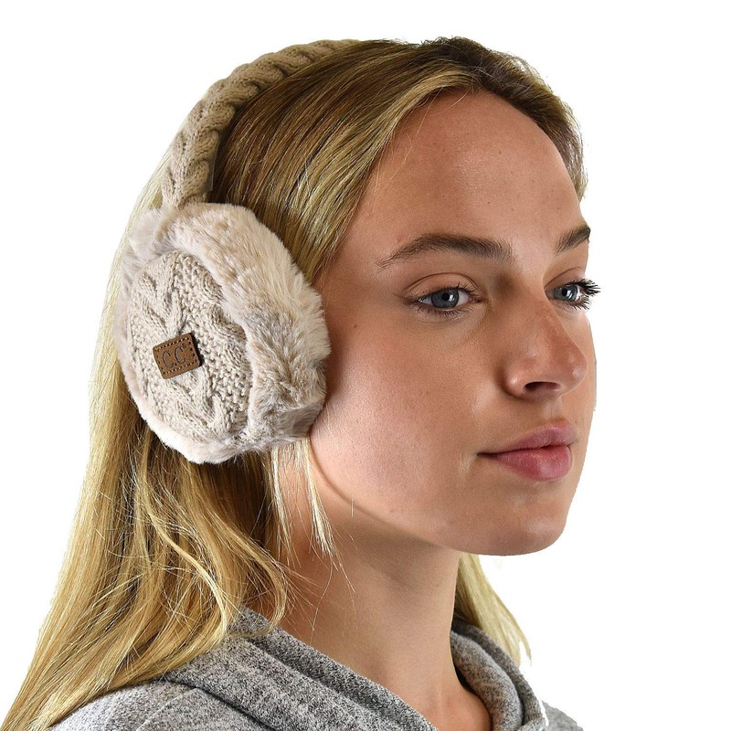 C.C Soft Winter Warm Adjustable Headband Ear Warmer Earmuffs, Beige