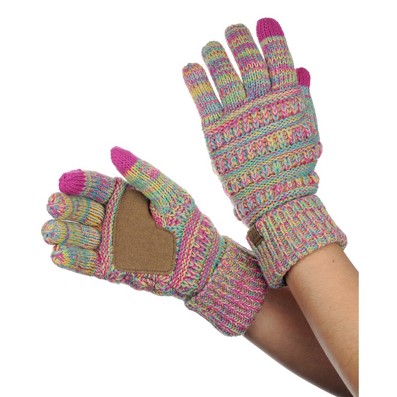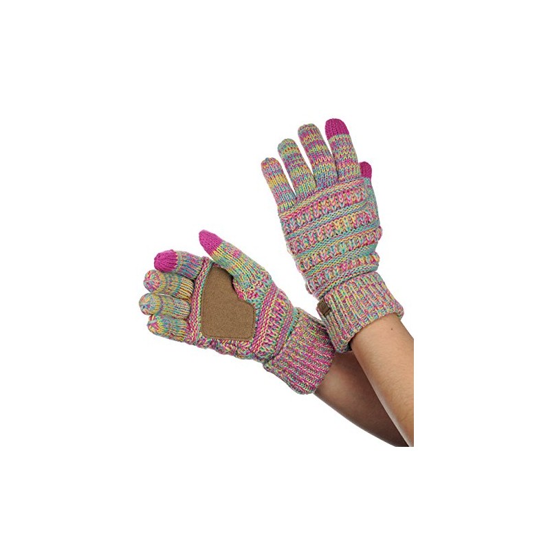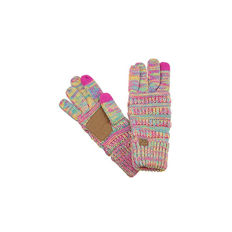 C.C Unisex Cable Knit Winter Warm Anti-Slip Touchscreen Texting Gloves, Bright Mix