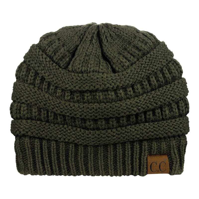 C.C Unisex Chunky Soft Stretch Cable Knit Warm Fuzzy Lined Skully Beanie, Dark Olive