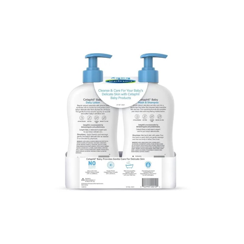 De los expertos en cuidado de la piel viene CETAPHIL Baby Wash & Champú, especialmente formulado para limpiar la delicada piel y el cabello del bebé sin secarse y probado por dermatólogos para ser suave con la piel sensible. Está hecho con una mezcla de extracto de caléndula calmante derivado de la flor de caléndula, vitaminas E y B5 y aloe vera para mantener al bebé suave, suave e hidratado. Como con todos los productos CETAPHIL Baby, CETAPHIL Baby Wash & Shampoo no contiene parabenos, colorantes ni aceite mineral. Es hipoalergénico, suave y seguro para el uso diario.