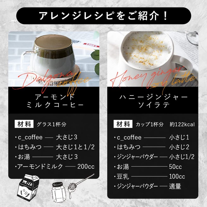 - 【特徴5:ビタミンD】“美容ビタミン”や“ダイエットビタミン”とも言われるビタミンD。C COFFEEは、1日推奨量の2倍以上のビタミンD(1000IU)を手軽に摂取できます。