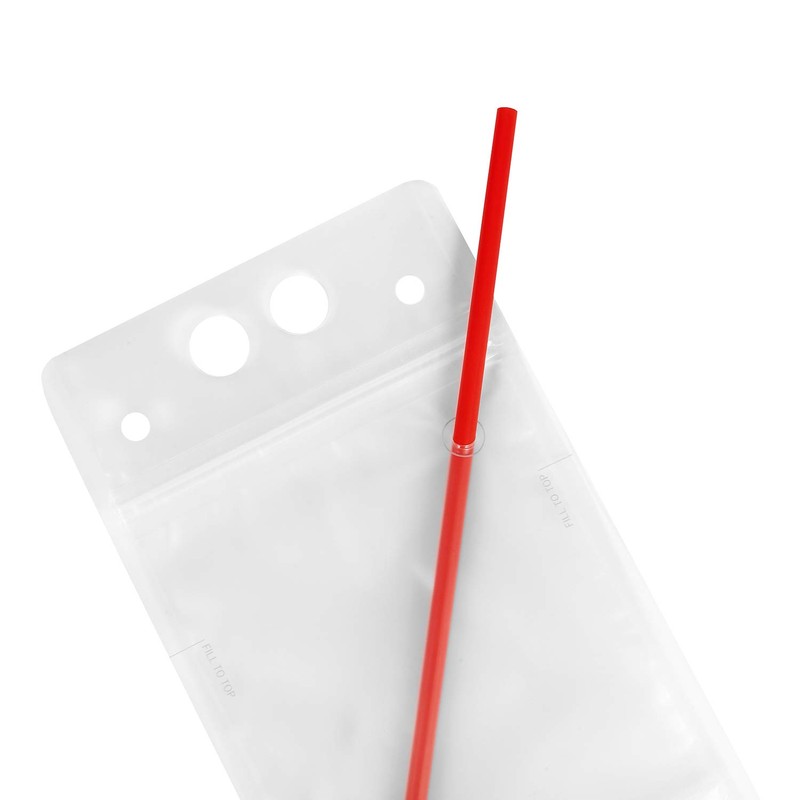 - Package include: 100 Hand-held drink pouches with 100 straws. Great for drinks, nuts, sugar containment.
