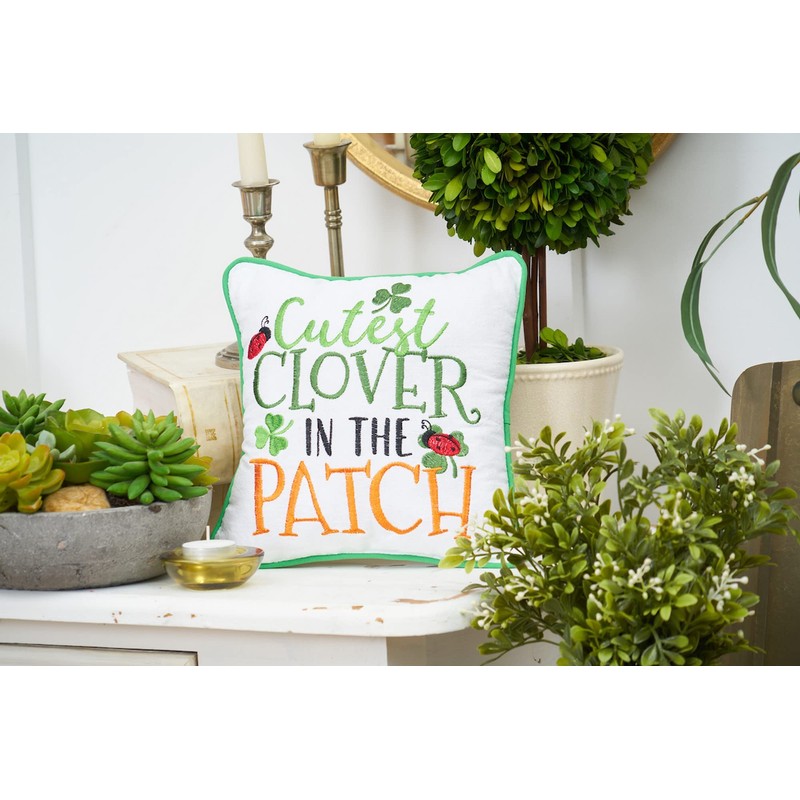 C&F Home 10" x 10" St. Patrick's Day Cutest Clover in The Patch Embroidered Small/Petite Accent Throw Pillow St Pattys Day Ireland Irish Shamrocks Spring Home Living Room Sofa Couch Chair Bed
