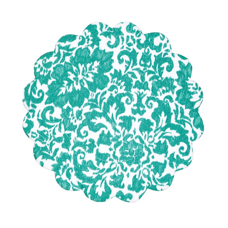 C&F Home Madison Aqua 17'' X 17'' Single Placemat Quilted Cotton Reversible Round Floral Geometric Washable Table Mats Easy to Clean Single Round Placemat Aqua Blue and White